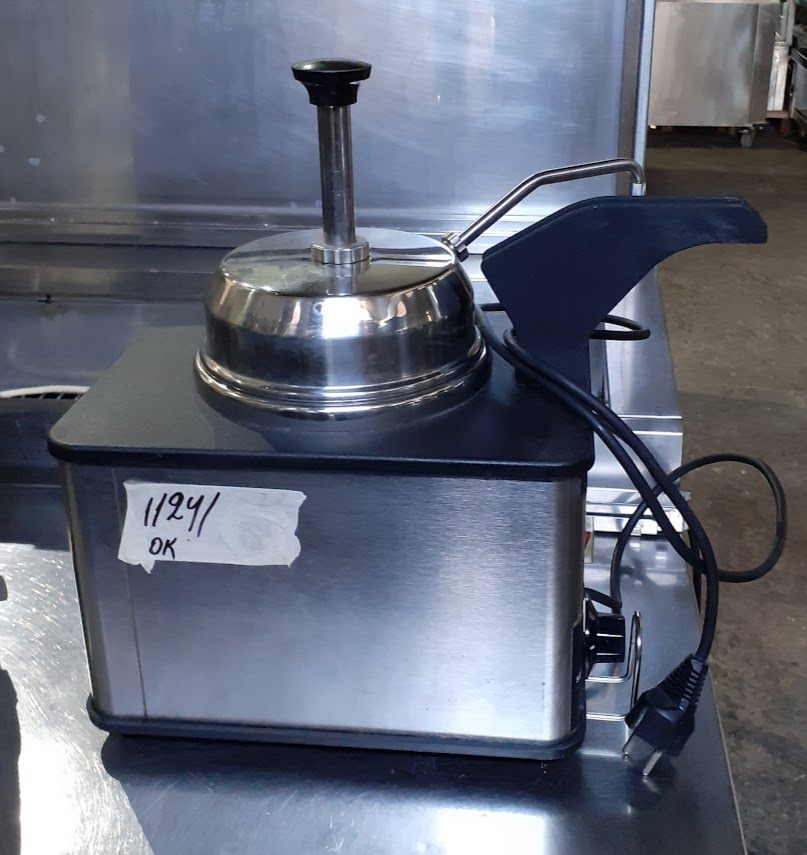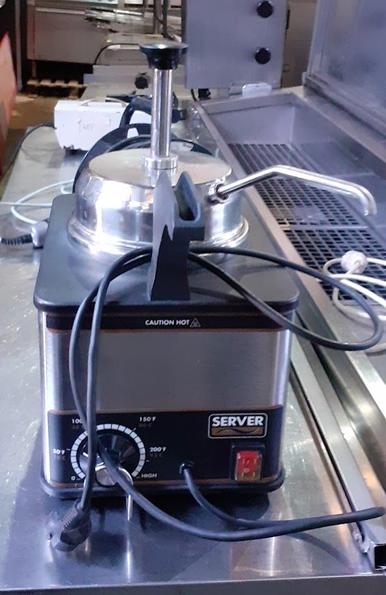 Μεταχειρισμένος διανομέας σάλτσας – με θερμαινόμενο στόμιο – για τυρί, nacho & σοκολάτα SERVER FSPWI-SS, 4,40Lt. Σε καλή κατάσταση. Διαστάσεις: 23x42x38εκ. Τιμή: 150€.