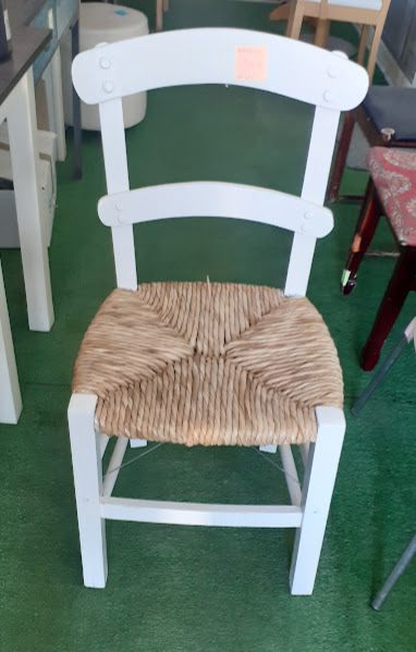 Μεταχειρισμένες καρέκλες καρφωτές, εσωτερικού και εξωτερικού χώρου, με ξύλινο σκελετό και φαρδύ ψάθινο κάθισμα. Σε καλή κατάσταση. Τιμή: 30€/τμχ.