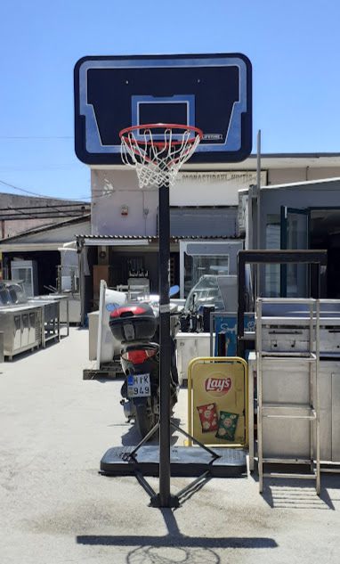 Μεταχειρισμένη μπασκέτα, με μεταλλική βάση και ρυθμιζόμενο ύψος. Σε καλή κατάσταση. Τιμή: 80€.