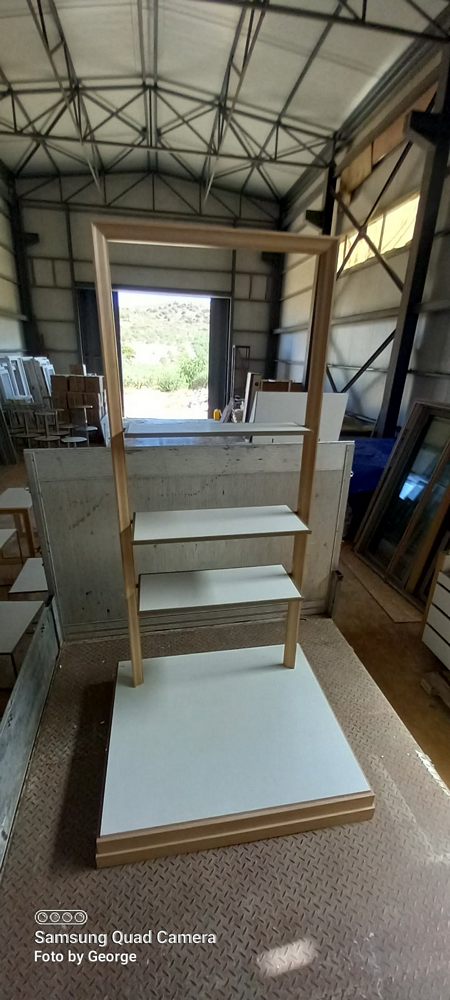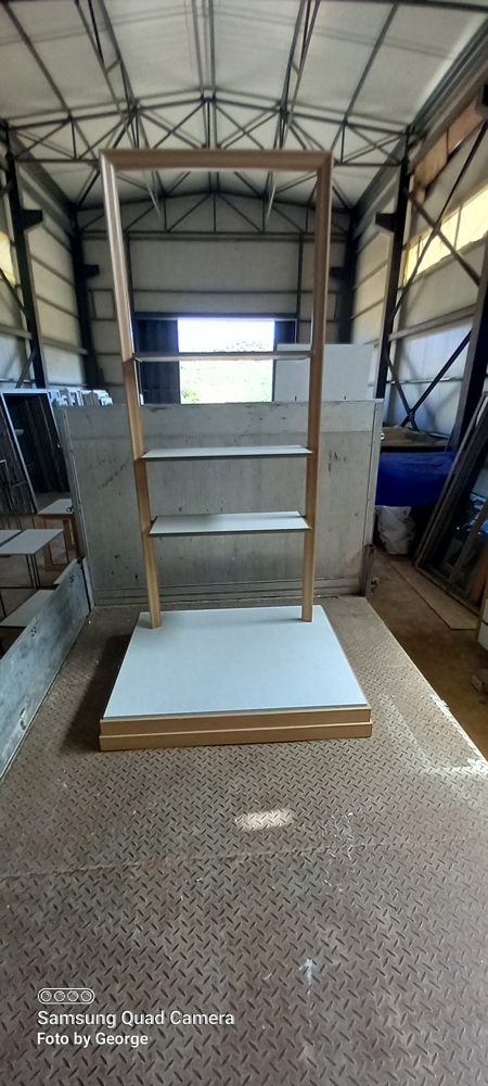 Used shelf unit, with base and wooden frame. In very good condition. Dimensions: 118x100x238cm. Price: 350€.