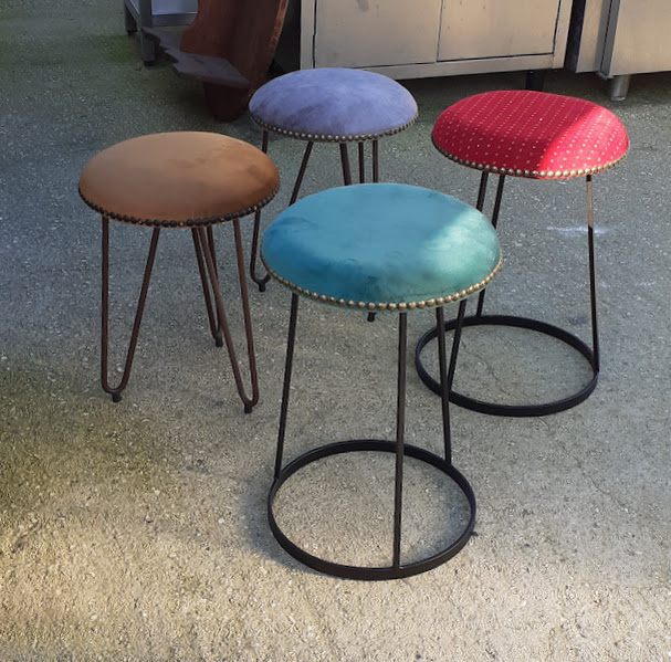 Used, low stool, with fabric seat and metal base. In good condition. Dimensions of Height: 47cm and 43cm. Price: 35€/pcs.