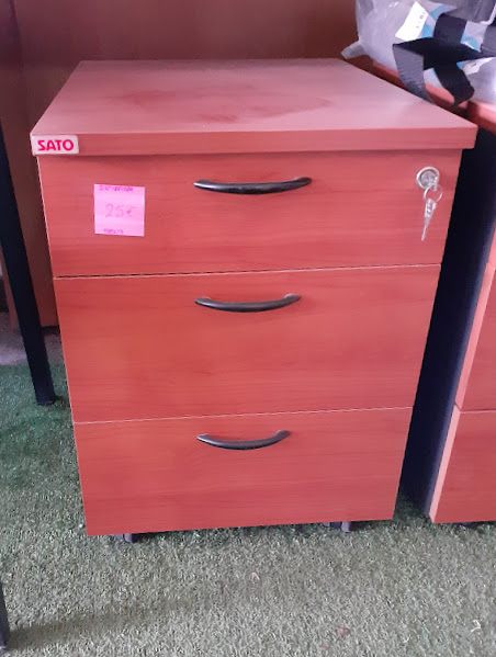 Μεταχειρισμένη συρταριέρα γραφείου, μελαμίνης, Sato, με 3 συρτάρια. Σε καλή κατάσταση. Διαστάσεις: 43x56x58εκ. Τιμή: 35€.