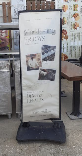 Μεταχειρισμένη, αντιανεμική ταμπέλα- επιγραφή πεζοδρομίου. Διπλής όψεως, με πλαστική βάση που μπορεί να γεμίσει με νερό ή άμμο. Σε καλή κατάσταση. Διαστάσεις: 59×180εκ. Τιμή: 30€.
