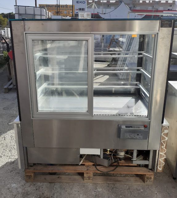 Μεταχειρισμένη ψυχόμενη βιτρίνα γλυκών, 3 επιπέδων, 700W. Σε πολύ καλή κατάσταση. Διαστάσεις: 132x83x132εκ. Τιμή: 2200€.