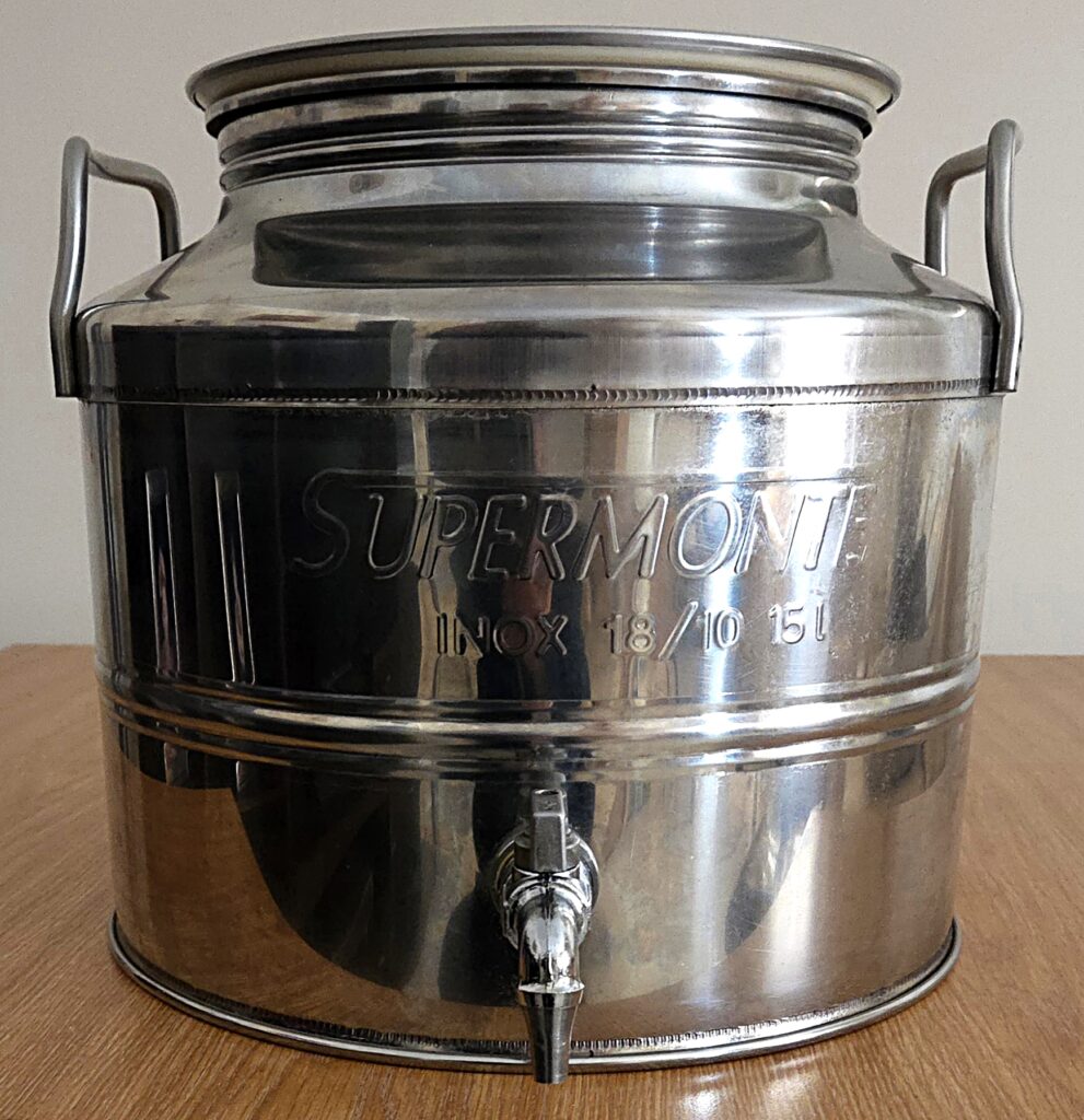 ΠΩΛΕΙΤΑΙ Ανοξείδωτος κάδος SUPERMONTE ΙΝΟΧ 18/10, χωρητικότητας 15 λίτρων, για αποθήκευσης υγρών όπως λάδι, κρασί κ.λπ. σε άριστη κατάσταση.
