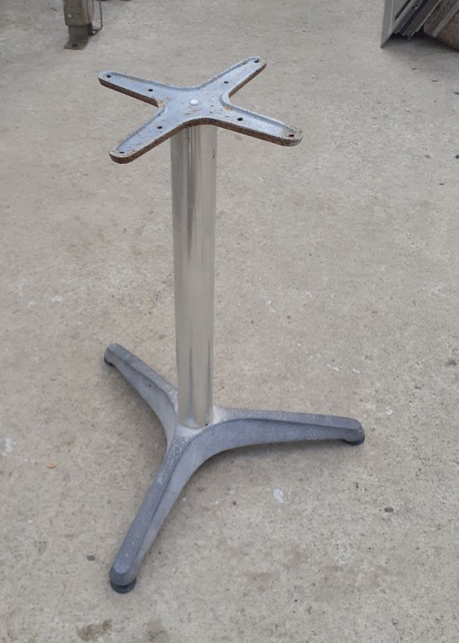 Μεταχειρισμένες ανοξείδωτες βάσεις τραπεζιών με ποδαράκια. Διαστάσεις: ύψος: 70 εκ.Τιμή: 15€/τμχ.