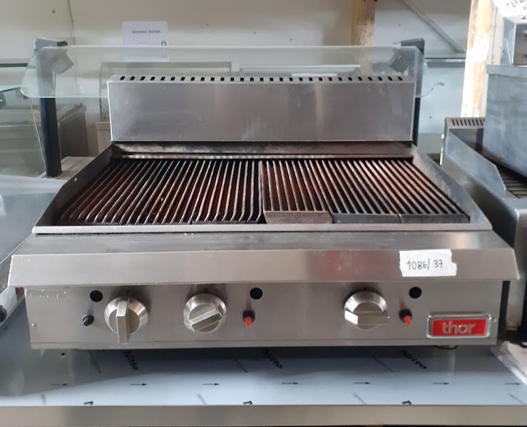 Μεταχειρισμένο γκριλ υγραερίου, τριπλό, THOR, με 3 ανάματα. Σε καλή κατάσταση. Διαστάσεις: 92x82x36εκ, πλάκα ψησίματος: 88×50εκ. Τιμή: 1200€.