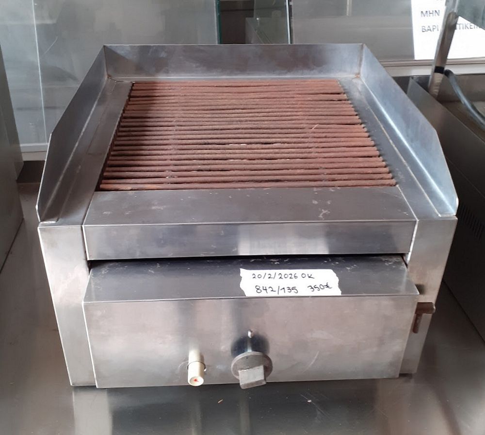 Μεταχειρισμένο επαγγελματικό γκριλ υγραερίου, ανοξείδωτης κατασκευής. Σε καλή κατάσταση. Διαστάσεις: 52x60x35 Εκ. Τιμή: 350€/τμχ.