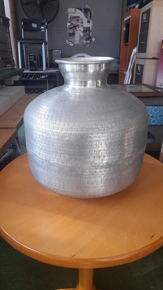 Used, aluminum decorative vase (Zaros). In good condition. Height: 40cm. Price: 50€