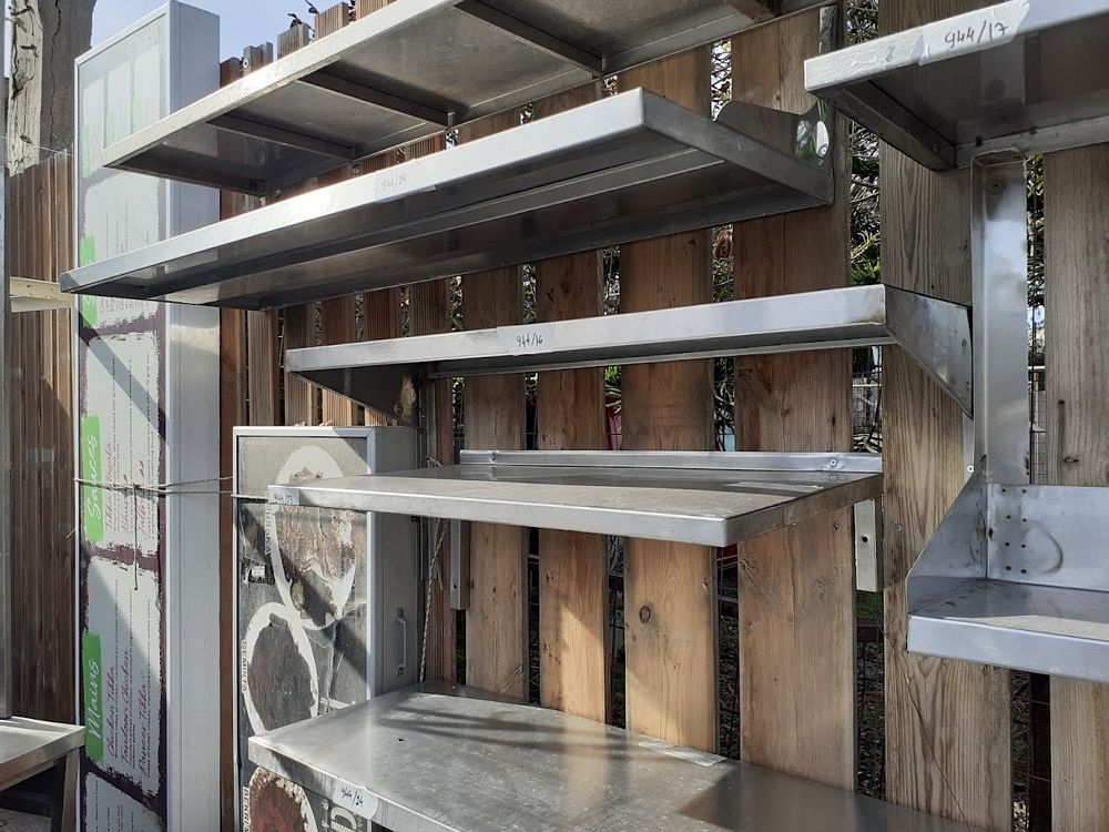 Used stainless steel, wall shelf,. Ideal for catering and commercial kitchens. In good condition. Dimensions: 90×45 cm Price: 50€/pc