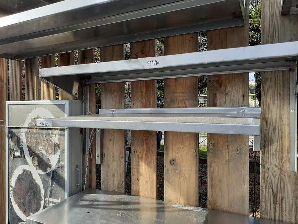 Μεταχειρισμένο, επιτοίχιο ράφι, ανοξείδωτο, υψηλής αντοχής. Κατάλληλο για χώρους εστίασης και επαγγελματικές κουζίνες. Σε καλή κατάσταση. Διαστάσεις: 90×45 εκ.