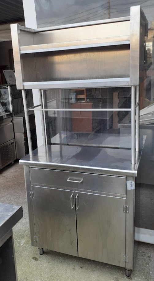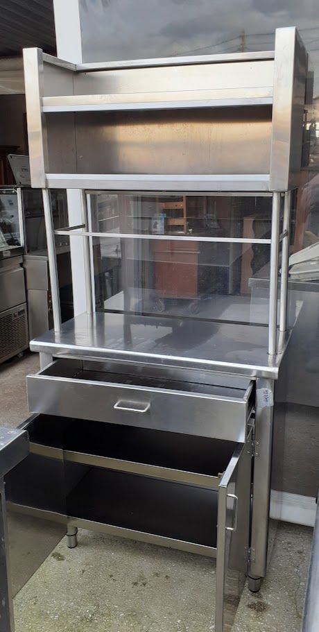 Μεταχειρισμένο επαγγελματικό ανοξείδωτο ερμάριο. Διαθέτει ραφιέρα, επιφάνεια εργασίας, ένα συρτάρι και ένα ανοιγόμενο ντουλάπι. Σε καλή κατάσταση. Διαστάσεις: 83x41x178 εκ. Τιμή: 400€/τμχ.