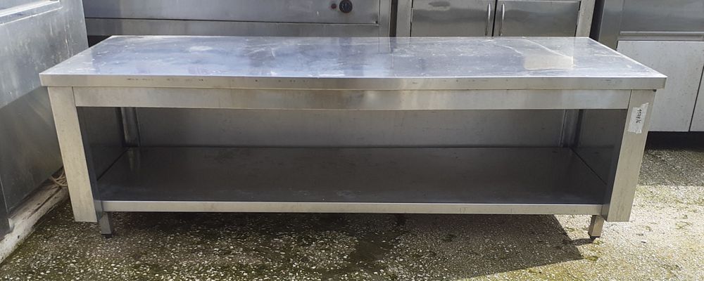 Used stainless steel cabinet, low, closed from 3 sides. In good condition. Dimensions: 200x70x66 cm. Price: 300€/pcs.