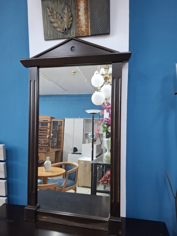 Used mirror with wooden frame, in dark brown color. In good condition. Dimensions: 67×112 cm. Price: 30€/pcs.