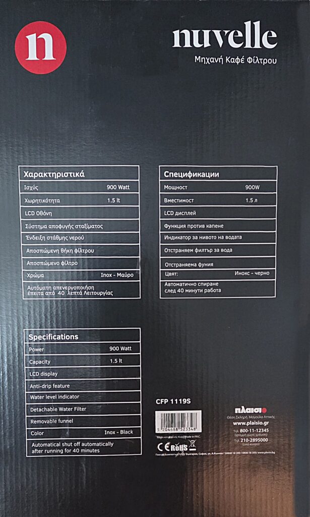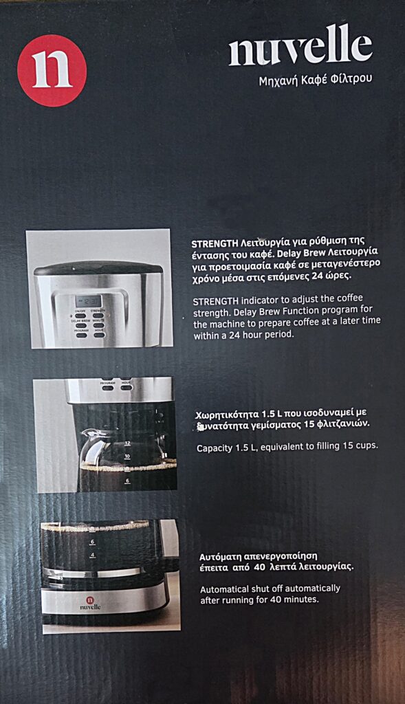 Καινούργια Μηχανή καφέ φίλτρου NUVELLE CFP1119S με χρονοδιακόπτη.