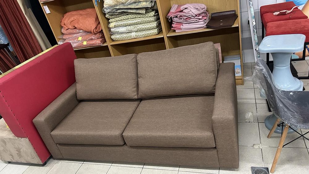 Used, two seater, fabric sofa. In good condition. Dimensions: 185x90x75cm. Price: 200€
