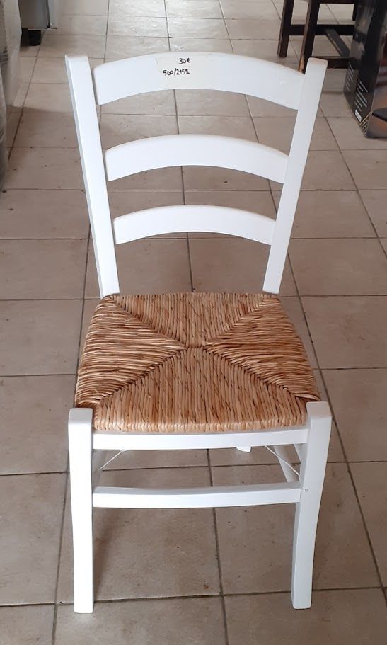 Used wooden chairs, white color with straw seats. In good condition. Price: 30€/pcs.