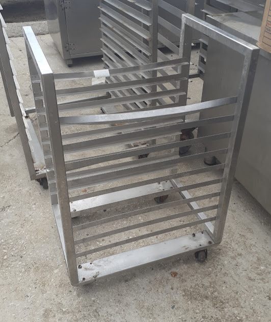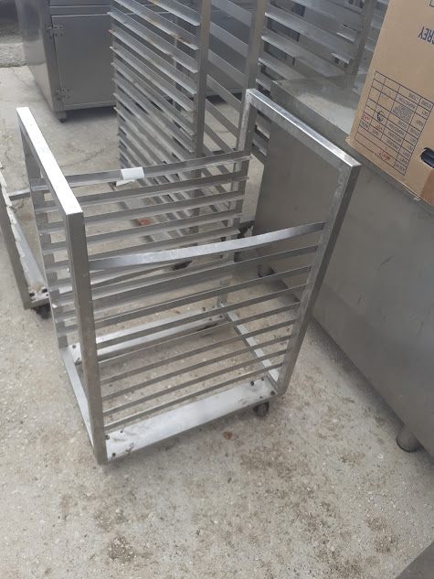 Μεταχειρισμένο καρότσι μεταφοράς για λαμαρίνες, 8 θέσεων. Διαστάσεις καροτσιού: 33x53x75εκ. Διαστάσεις λαμαρίνας: 32×52εκ. Σε καλή κατάσταση. Τιμή: 80€