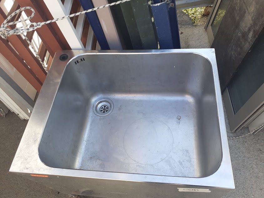 Used single stainless steel sink, with wheels. Dimensions: 70x65x70 cm. Dimensions of basin: 60x50x30cm. In good condition. Price: 250€