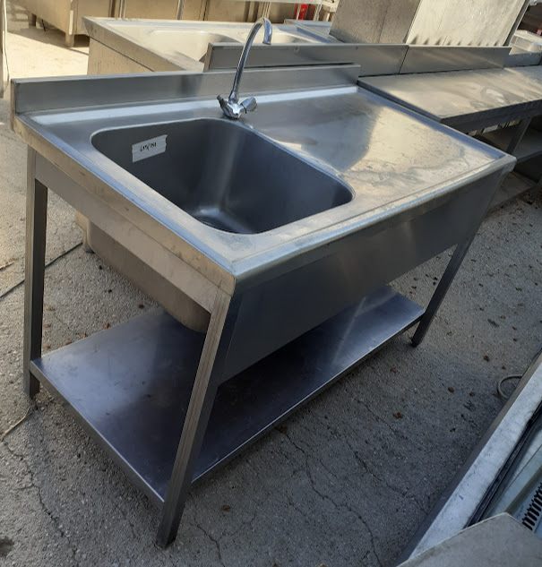 Used, single, inox sink. Dimensions: 140x70x84 cm. Basin dimensions: 50x50x30cm. In good condition. Price: 400€