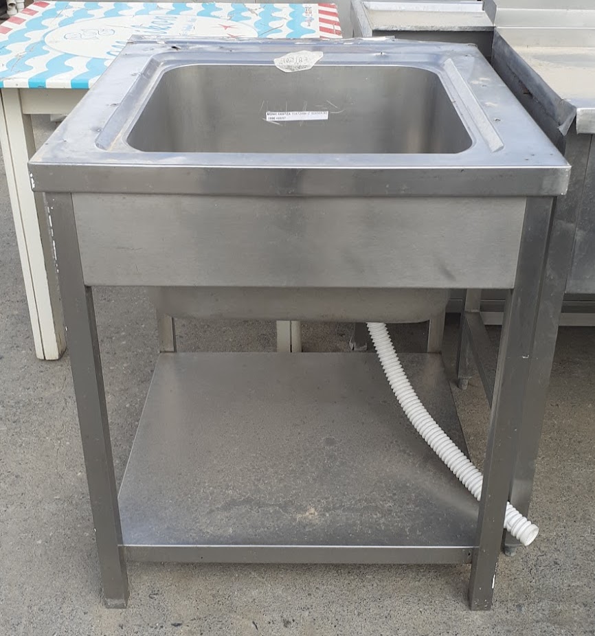 Used single sink, stainless steel construction. In good condition. Dimensions: 70x72x84 cm. Bowl: 50x50x30 cm. Price:100€/pc.