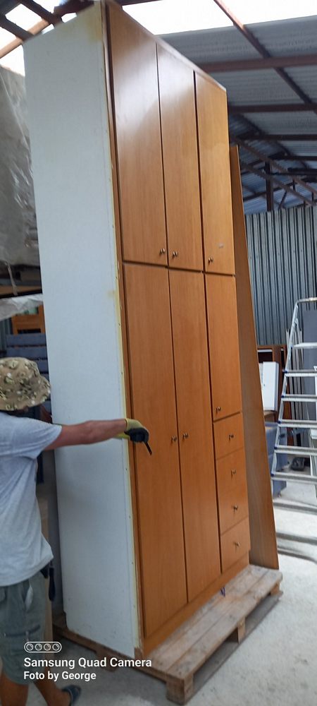 Μεταχειρισμένη, τρίφυλλη, ξύλινη ντουλάπα, με μεγάλο αποθηκευτικό χώρο. Σε καλή κατάσταση. Διαστάσεις: 120x57x316εκ. Τιμή: 200€.