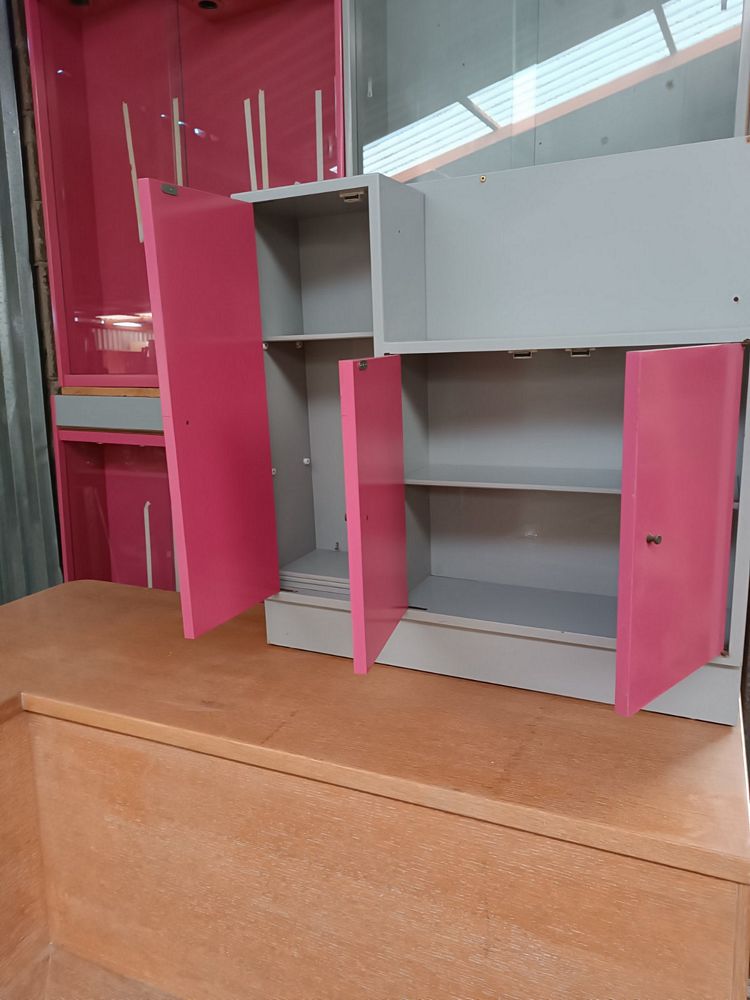 Used cabinet with shelves and three opening doors. In good condition. Dimensions: 85x20x87cm. Price: 80€