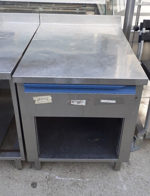 Μεταχειρισμένος, ανοξείδωτος πάγκος ερμάριο, κλειστό από τις 3 πλευρές και με ένα συρτάρι. Διαστάσεις: 70x94x8 εκ. Σε καλή κατάσταση. Τιμή: 300€