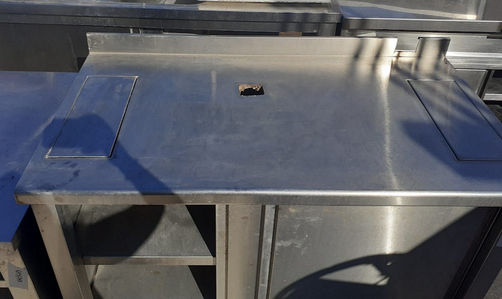 Used, inox workbench, with 2 sliding doors. In good condition. Dimension: 130x70x88cm. Price:300€