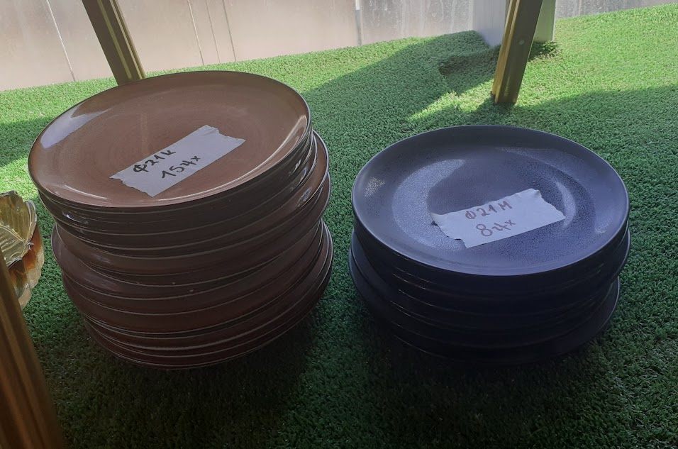 Used plates in very good condition, in brown and dark blue colors. Diameter: 21 cm. Price: 1€/pcs.