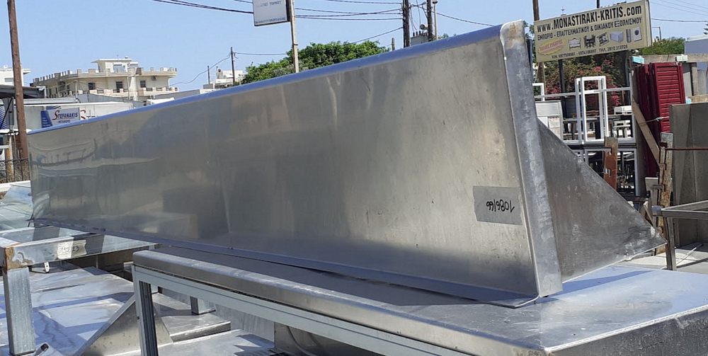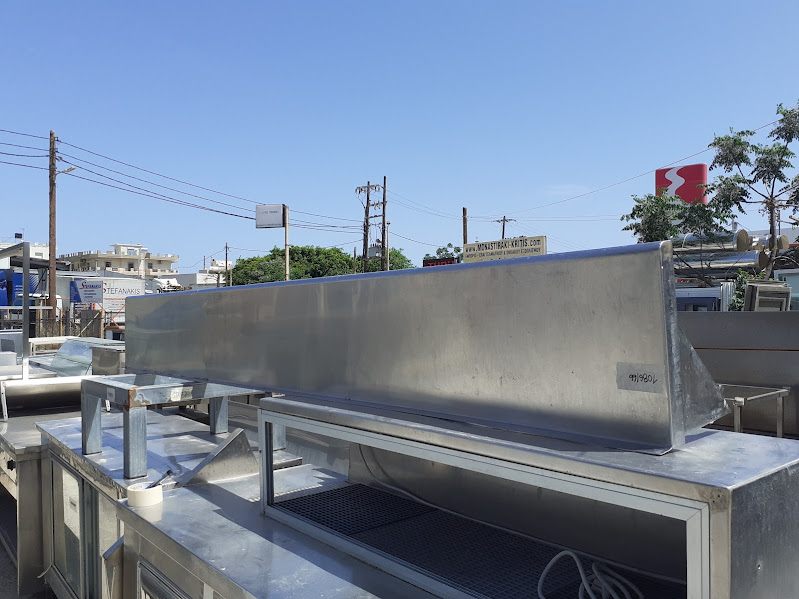 Used, inox wall shelf. In good condition. Dimensions: 264x34x28cm. Price: 200€.
