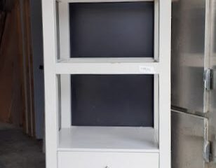 Μεταχειρισμένο ξύλινο ραφάκι σε σκούρο χρώμα, με γαντζάκια. Σε πολύ καλή κατάσταση. Διαστάσεις: 74.5x17x19 εκ. Τιμή: 25€.