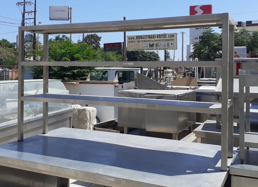 Μεταχειρισμένη, τριπλή, ανοξείδωτη ραφιέρα πάγκου. Σε πολύ καλή κατάσταση. Διαστάσεις: 198x41x112εκ. Τιμή: 280€.