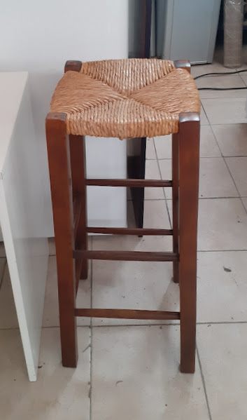 Μεταχειρισμένο, ξύλινο σκαμπό με ψάθινο κάθισμα. Σε καλή κατάσταση. Διαστάσεις: 30x30x79 εκ. Τιμή: 25€/τμχ.