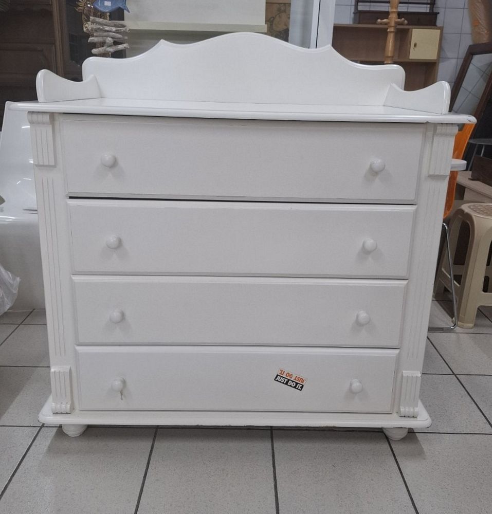 Μεταχειρισμένη συρταριέρα-αλλαξιέρα, λευκό χρώμα, με τέσσερα συρτάρια. Διαστάσεις: 95x57x110 εκ. Σε καλή κατάσταση. Τιμή: 100€