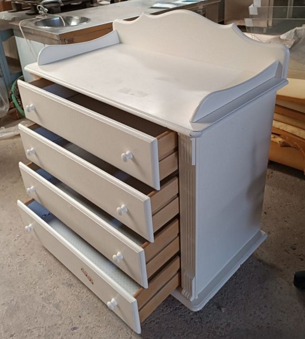 Used white dresser changing table with four drawers. Dimensions: 95x57x110 cm. In good condition. Price: 100€