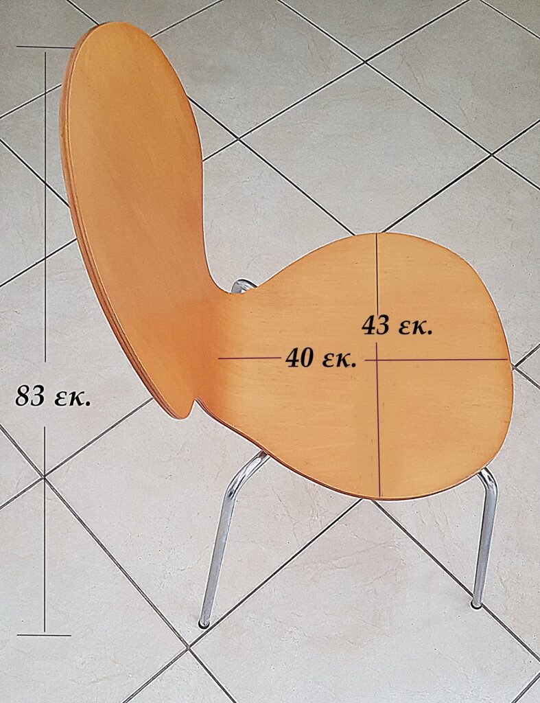 1. Κάθισμα Ξύλο – Μέταλλο: Πλάτος 43 εκ. Βάθος 40 εκ. Ύψος 83 εκ.