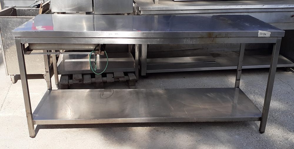 Μεταχειρισμένο, ανοξείδωτο τραπέζι πάγκος. Σε καλή κατάσταση. Διαστάσεις: 190x70x85εκ. Τιμή: 350€.
