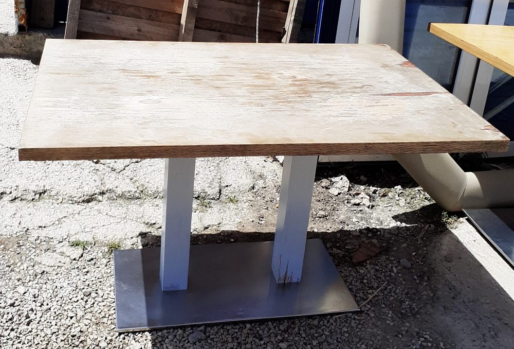 Μεταχειρισμένο τραπέζι ξύλινο, εξωτερικού και εσωτερικού χώρου, με μεταλλική βάση. Σε καλή κατάσταση. Διαστάσεις: 124x80x76εκ. Τιμή: 70€.