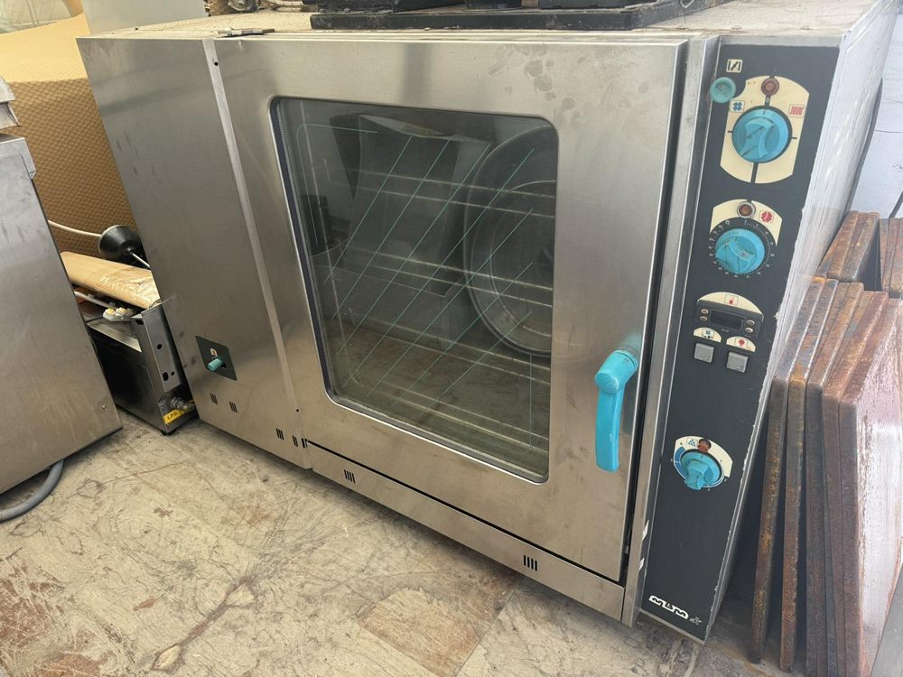 Used, professional, gas oven steamer, for 8 trays. In good condition. Dimensions: 134x100x105cm, inside dimensions of oven: 60x40cm. Price 3700€.