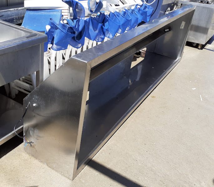 Used, professional kitchen hood, stainless steel. In good condition. Dimensions: 300x88x45 cm. Price: 450€