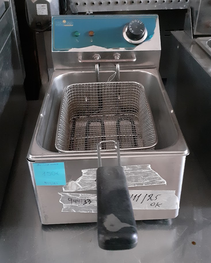 Μεταχειρισμένη επαγγελματική φριτέζα μονή, ανοξείδωτη. Διαθέτει αποσπώμενο καλάθι και ρυθμιζόμενο θερμοστάτη. Κατάλληλο για καταστήματα εστίασης. Σε καλή κατάσταση. Διαστάσεις: 31x55x42εκ. Τιμή: 150€/τμχ