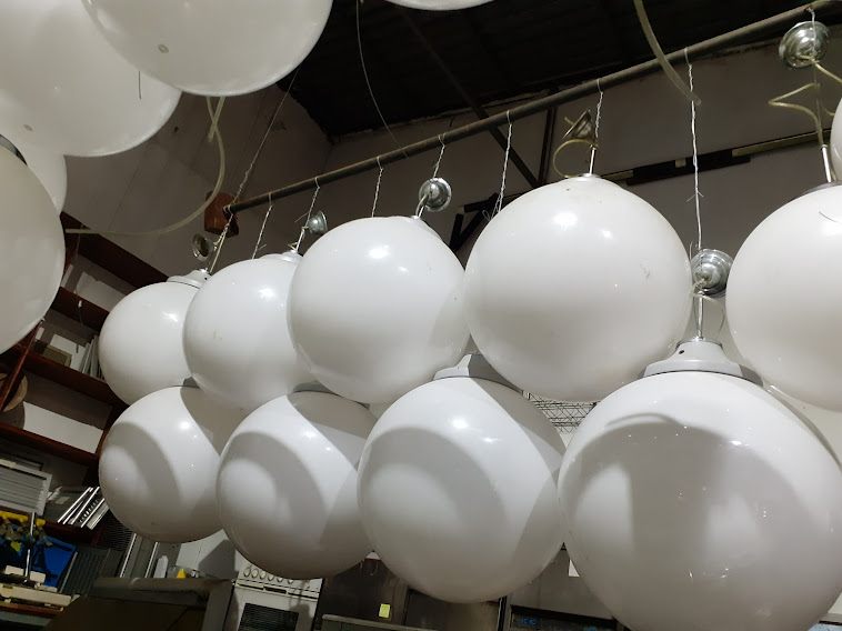 Μεταχειρισμένο φωτιστικό οροφής με μεταλλικό σκελετό και πλαστική μπάλα, σε λευκό χρώμα. Σε καλή κατάσταση. Διαστάσεις: Φ60 εκ. Τιμή: 50€