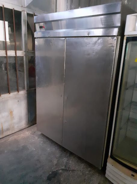 Μεταχειρισμένο ανοξείδωτο διφυλλο ψυγείο-συντήρηση, με ενσωματωμένο μοτέρ. Σε καλή κατάσταση. Διαστάσεις: 140x85x207 εκ. Τιμή: 1100€.